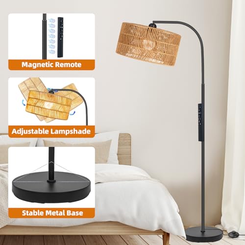- Stepless Dimmable & Color Temperatures: Our boho floor lamp comes with a 9W LED bulb, which can be adjusted lightness from 0-100% brightness and stepless temperature settings ranging from 2700K-6000K as needed; Our arc rattan floor lamp also has pre-set modes offering various scenes such as: read, nursery, work and night light to meet your various needs
