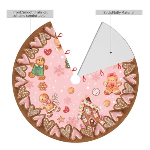 Candy Gingerbread Man Christmas Tree Skirt - Plush Polyester Mat Resistant with 3 Red Ties for Xmas, Halloween Decorations, Party Decor 30"