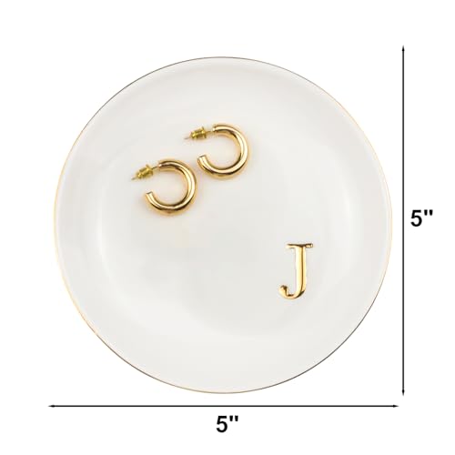 Ceramic Ring Dish Initial Jewelry Dish Personalized J-Monogrammed For Women Engagement Wedding Gifts,Jewelry Tray For Friends,Sister,Birthday Mother'S Day Christmas For Women, White