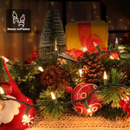 Christmas Lights 50 Count Clear Mini Lights Green Wire UL Certified Connectable Warm White String Lights for Christmas Decor (50 Count 13FT)