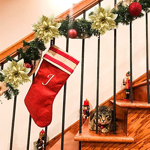 - [ Package And Size ] 12 pcs Christmas glitter poinsettia flowers + 12 pcs metal clips + 12pcs stems! The diameter of the poinsettia christmas flower is approximate 14cm /5.5in. The set comes with clips and stems. You can easily attach them to Christmas tree, Christmas wreath or garlands and help to give it a real pop of brightness evenly distributed.