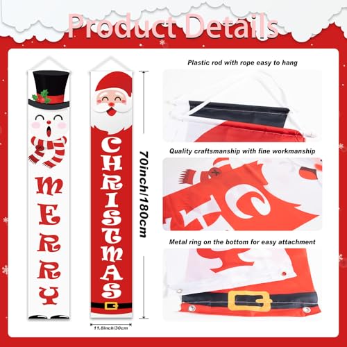 - Christmas Banner: Our Christmas porch banner measures 71 x 12 inches/180 x 30 cm and includes 1 Santa Claus door banner and 1 snowman door banner. Use it to welcome the arrival of warm winter holidays