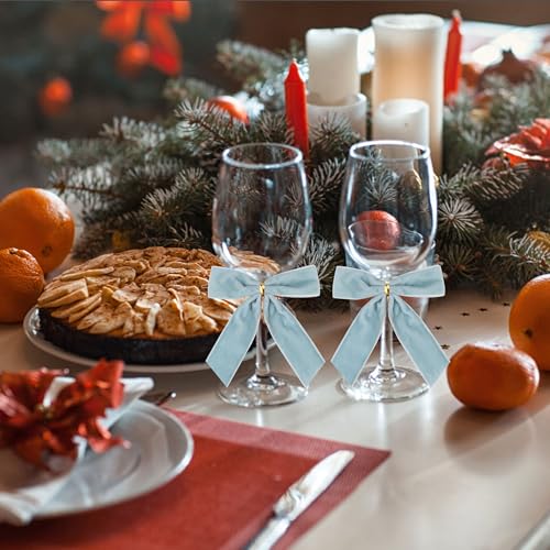 Christmas Velvet Bows Light Blue 24 Pack ? 3.5 Inch Holiday Tree Ornaments with Twist Tie Decorative Ribbon Bows for Christmas Tree, Wreath, Gift Wrapping & Party Decoration