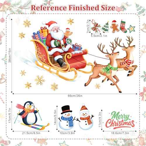 Christmas Window Clings Decoration, Santa Sleigh Reindeer Snowman Reusable No Glue Stickers Xmas Decals Christmas Decorations for Window Glass Party Supplies