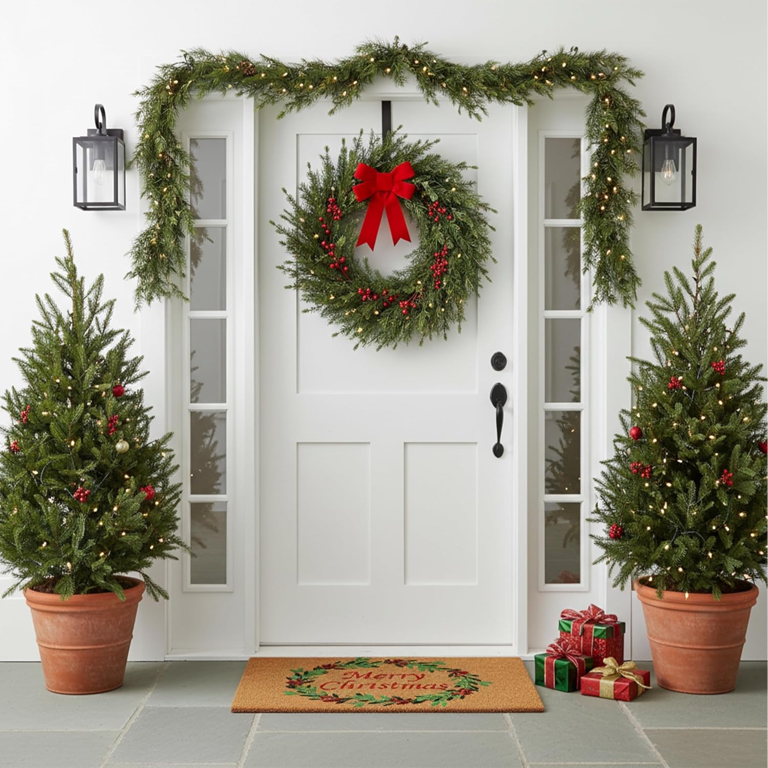 Christmas Wreath Doormat - 17" x 29" - Colorful Holiday Entrance Mat by Calloway Mills