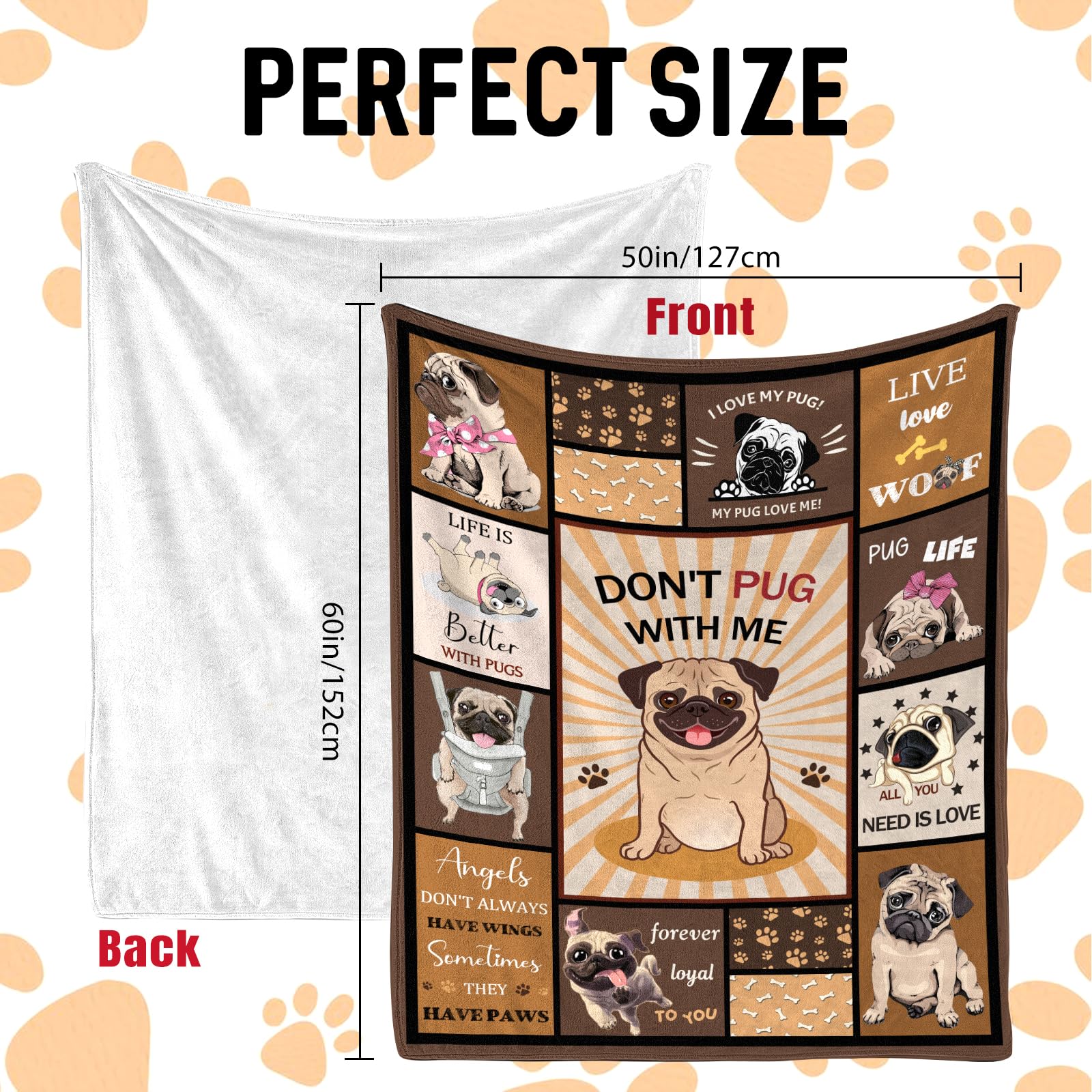 - Perfect Pug Gift: Join the pug craze and celebrate the adorable Doug the Pug with this blanket designed for pug lovers, whether it's for yourself or a friend, this blanket is a fun addition to any pug lover's collection