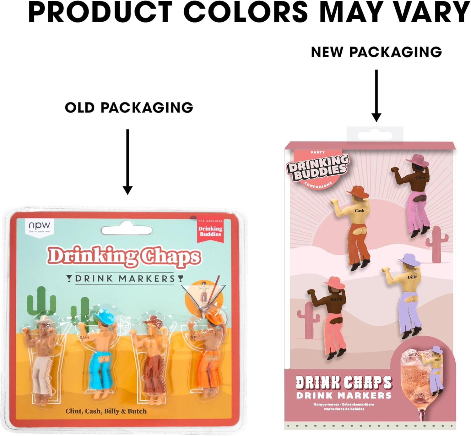 - CHOOSE YOUR BUDDY - This wine markers pack includes 4 drink charms. Introduce your girl gang to Clint, Buck, Billy and Butch – four hunky cowboy chaps who are ready to be your drink buddies, and add spunk to girls' nights and drinking parties