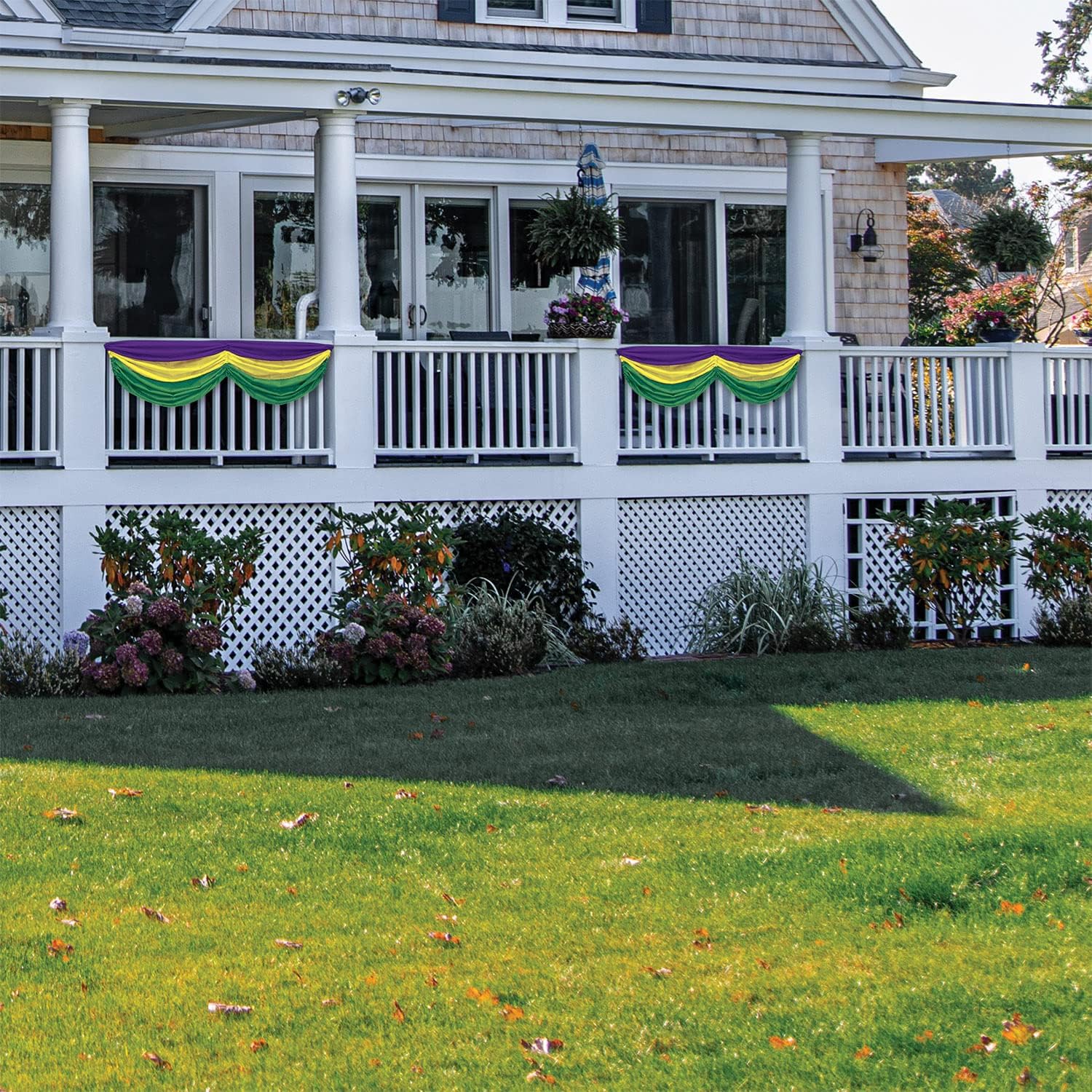 Bring the festive spirit of Mardi Gras to your event with the Beistle Comedy & Tragedy Faces Fabric Bunting. This 70-inch wide decoration features bold and colorful designs of the iconic comedy and tragedy masks in traditional Mardi Gras hues of purple, green, and gold. Made from lightweight and durable polyester fabric, this bunting is perfect for enhancing indoor or outdoor celebrations. It includes adjustable drawstrings for easy hanging and secure placement on walls, railings, or tables. Whether you're hosting a Mardi Gras party, decorating for a theatrical event, or adding flair to a parade float, this fabric bunting delivers vibrant color and cultural significance to your decor. Reusable and versatile, the Beistle Comedy & Tragedy Faces Fabric Bunting is a must-have for your next celebration.
