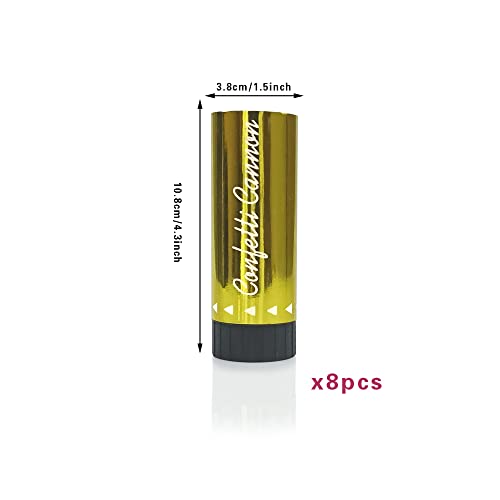 - Package: This pack comes with 8 confetti cannon poppers, make your party a memorable affair.A fun, versatile party accessory, these gold confetti cannons are perfect for any special event.