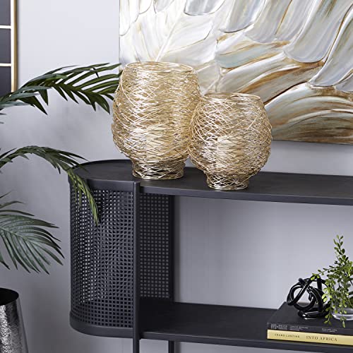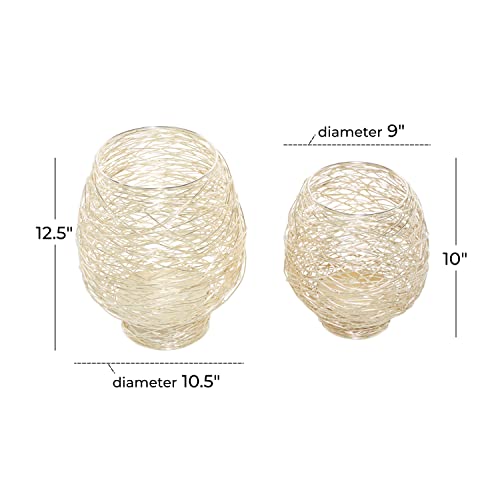 CosmoLiving by Cosmopolitan Metal Indoor Outdoor Candle Lantern Tealight Decorative Lantern Candle Holder, Set of 2 Lantern 13", 10"H, Gold