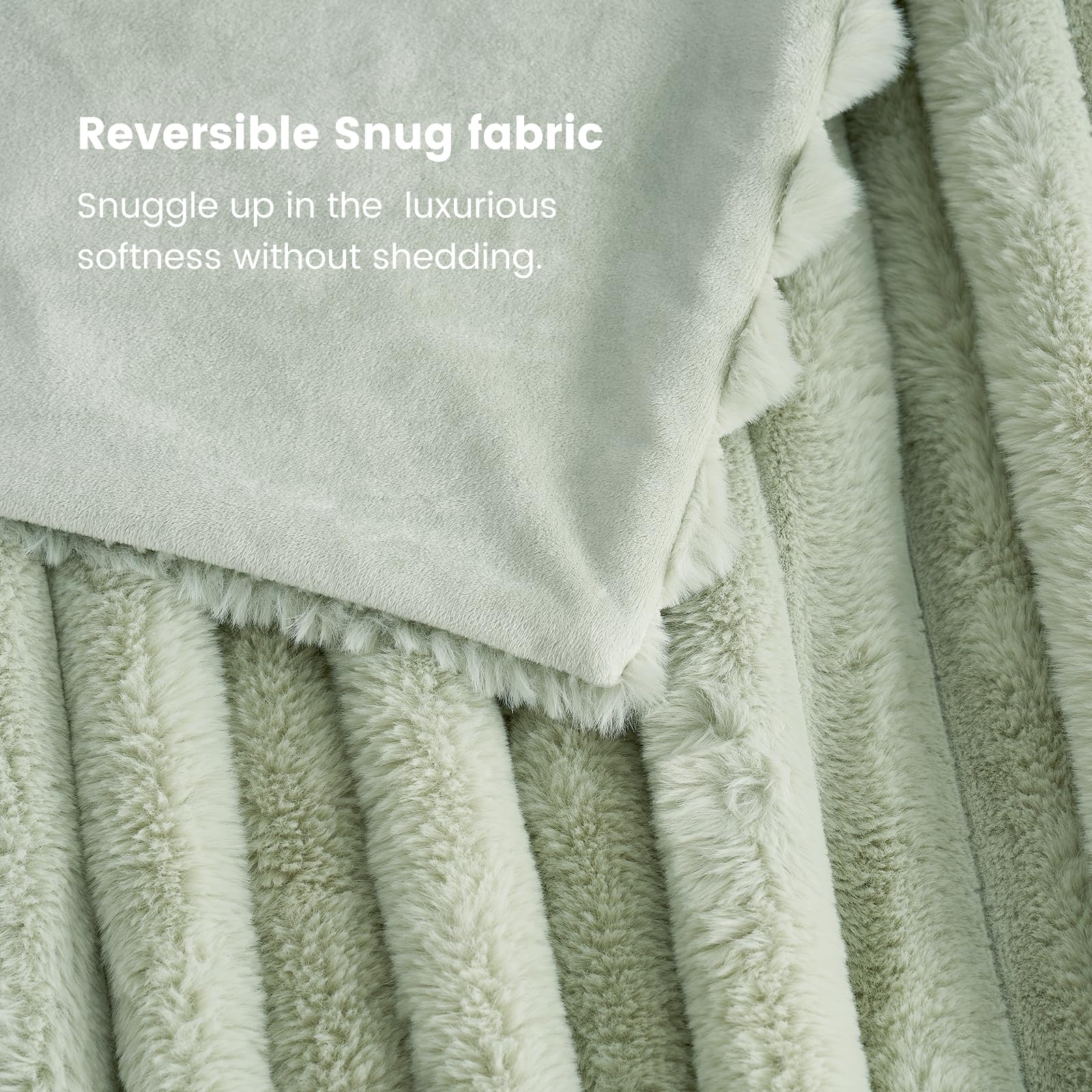 Cozy Bliss Faux Fur Throw Blanket for Couch, Cozy Warm Plush Striped Blanket for Sofa Bedroom Living Room, 50 * 60 Inches Sage Green