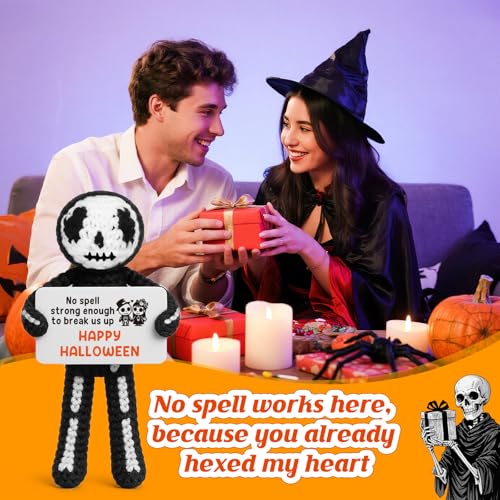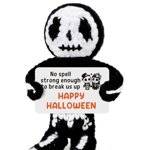 - Crochet skeleton gift brings a spooky romantic touch for Halloween, perfect for couples who enjoy gothic love, ideal as a party decoration, anniversary keepsake, or unique surprise for boyfriend or girlfriend