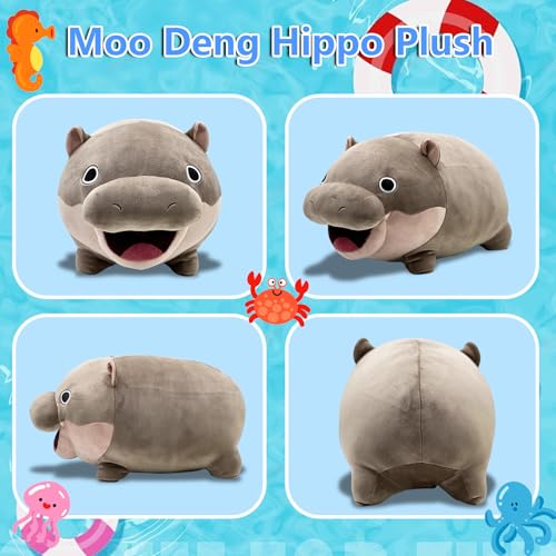 - Moo Deng Plush Toys: Cute pygmy hippo plushie toy has soft texture and is made of good fabric pp cotton, hippopotamus stuffed animal is fluffy, soft, delicate and skin friendly, moo deng hippo plush pillow could accompany you all time