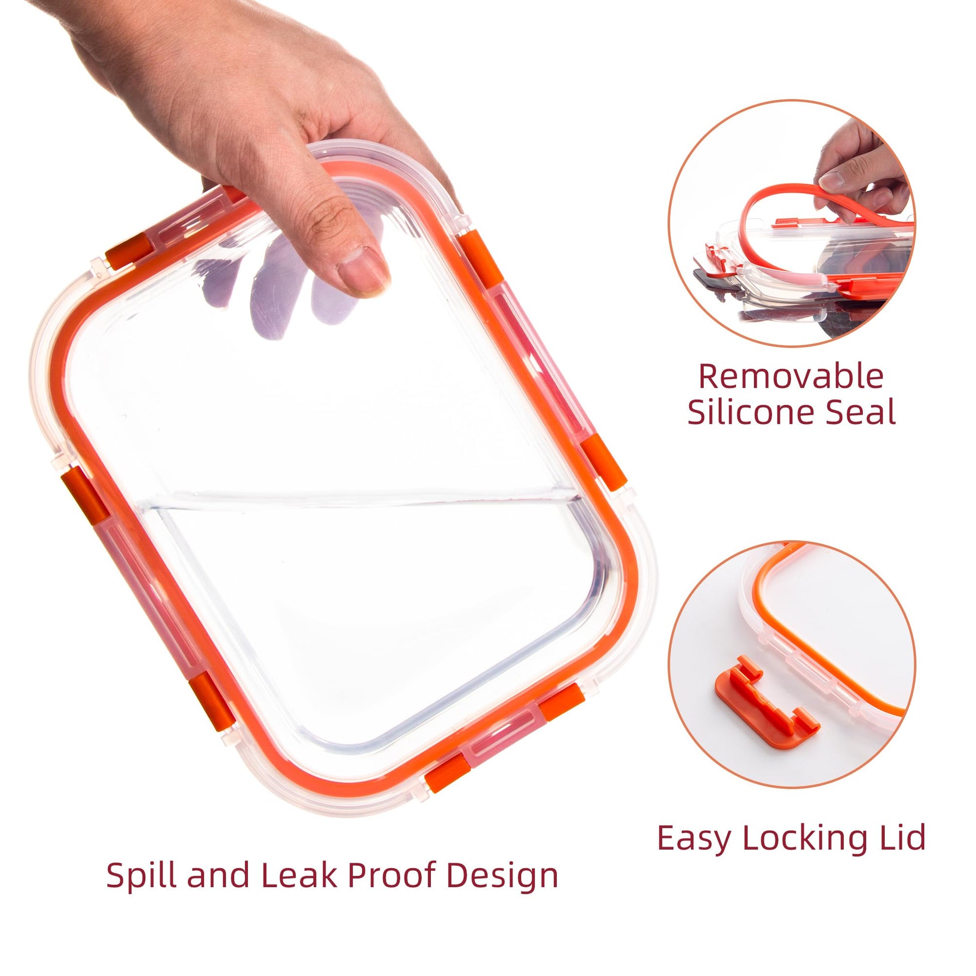 - AIRTIGHT LIDS & LEAK PROOF: These glass meal prep containers are made of high borosilicate glass with a transparent lid. Colorful Snap locking lids with silicone seals ensure your meal prep food does not leak or spill over. They provide you with mess-free transport and leak-proof food storage.