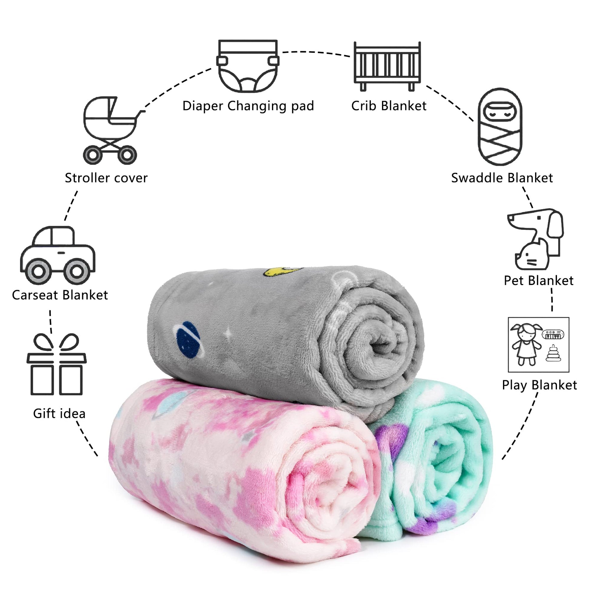 DaysU Plush Flannel Baby Blanket Super-Soft Lightweight, Printed Fleece Baby Blanket for Unisex, Oversized Bed Throws for Kids and Children, Grey Space 50”x60”