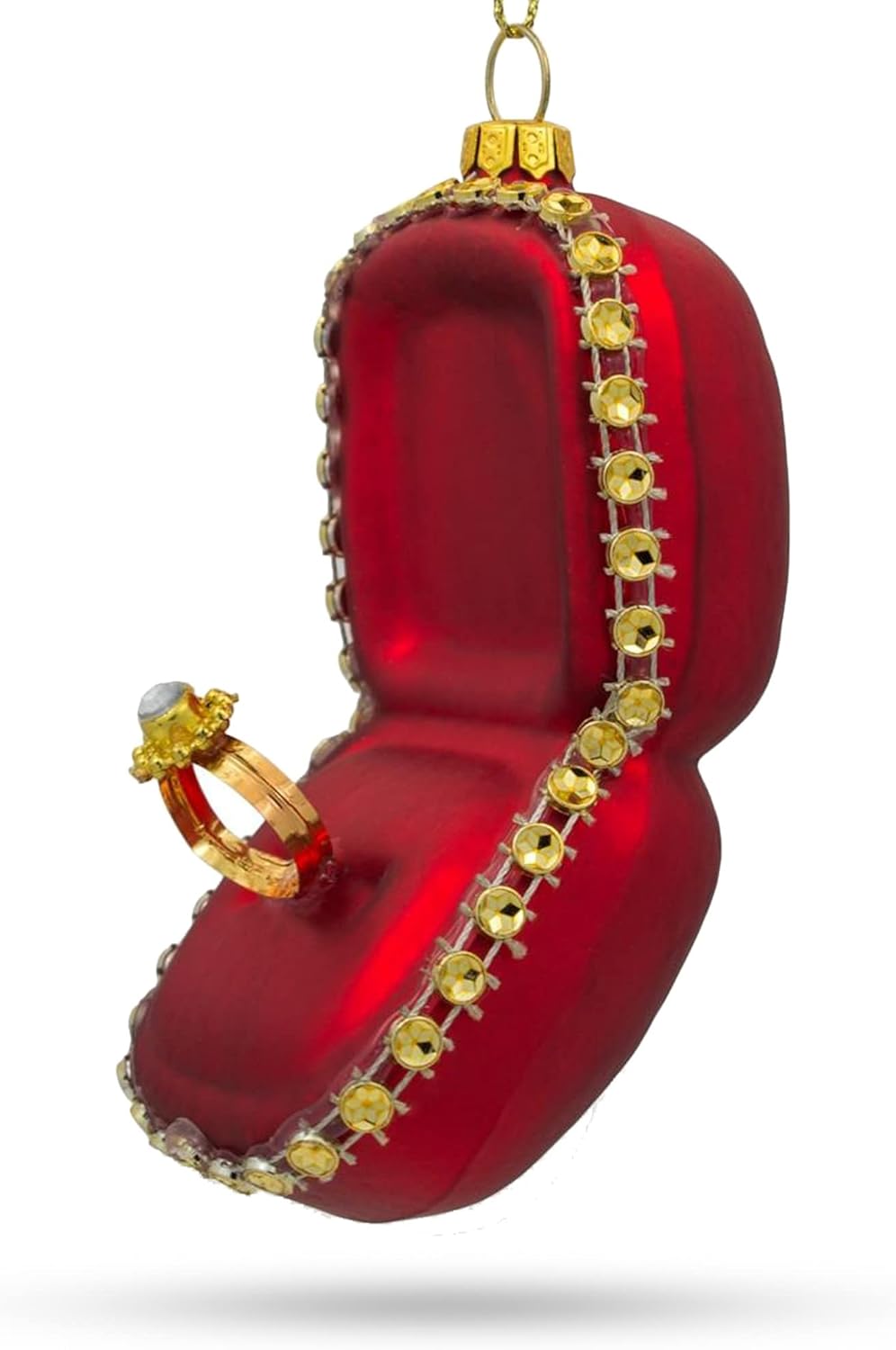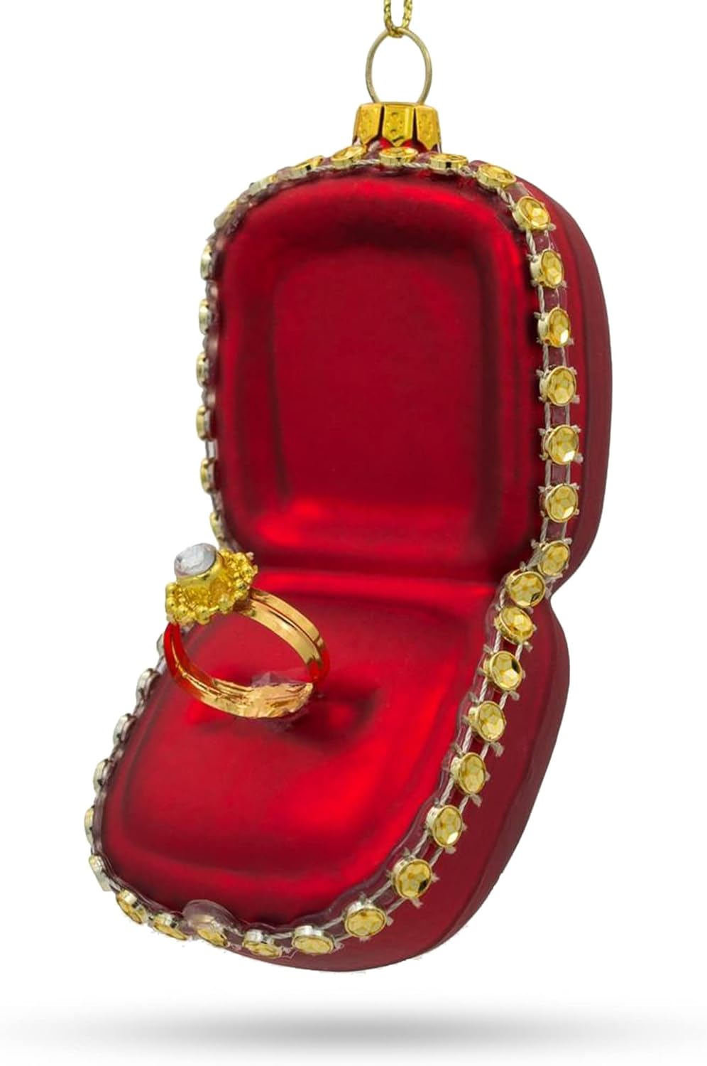 Diamond Engagement Ring Christmas Ornament - Handcrafted Blown Glass Decor
