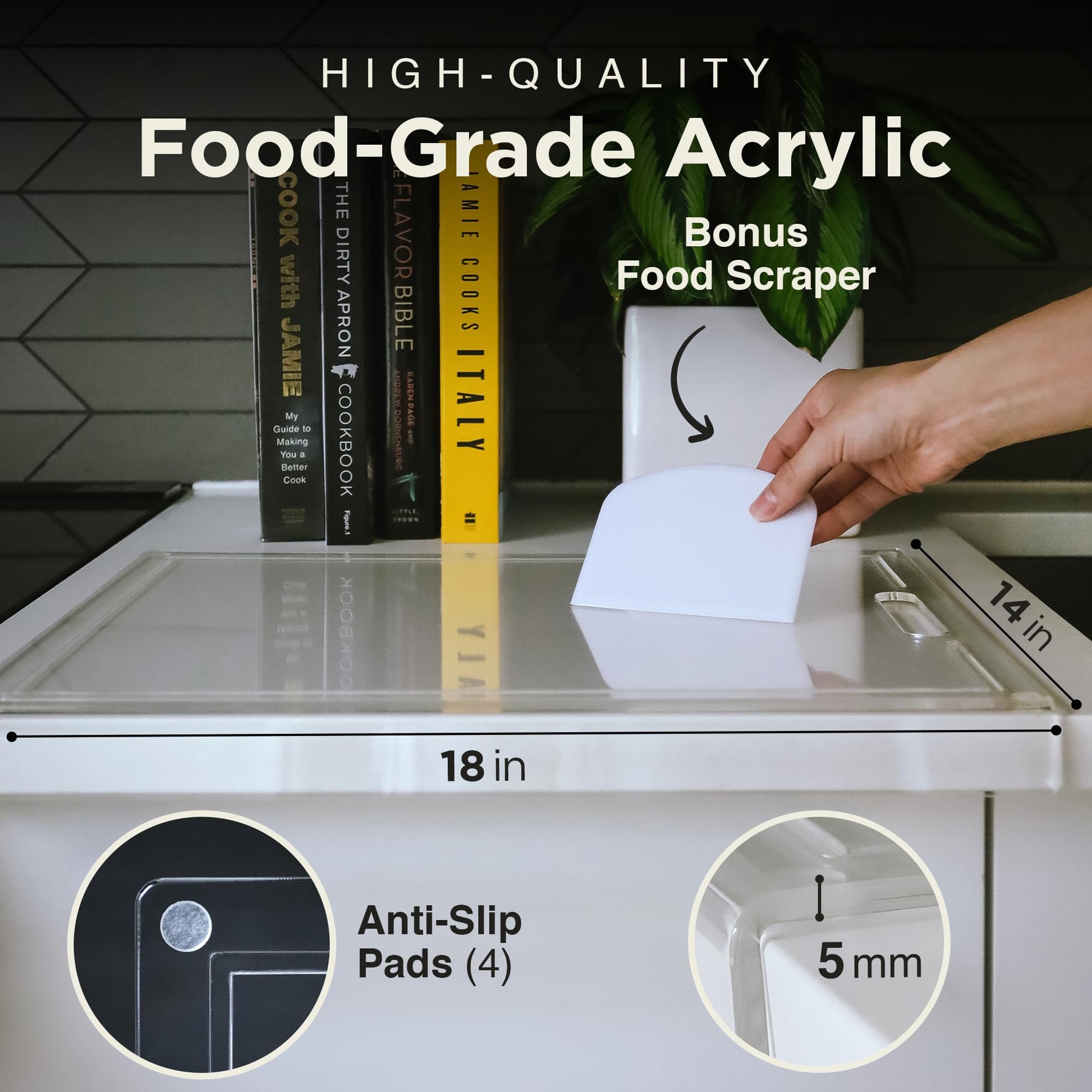 DIAMONDSLICE Clear Acrylic Cutting Board for Countertop (18x14 inches) with Food Scraper | Multipurpose Large Counter Cutting Boards & Serving Platter for Kitchen - Essential Kitchen Decor Gifts