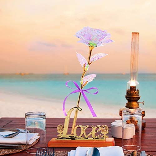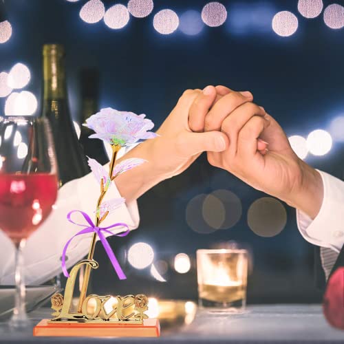 Double Couple Galaxy Forever Crystal Colorful Rose Flower with Love Stand Unique Rose Gifts for Mother's Day Wedding Anniversary Girl's Birthday Christmas and Valentine's Day (Multicolor)