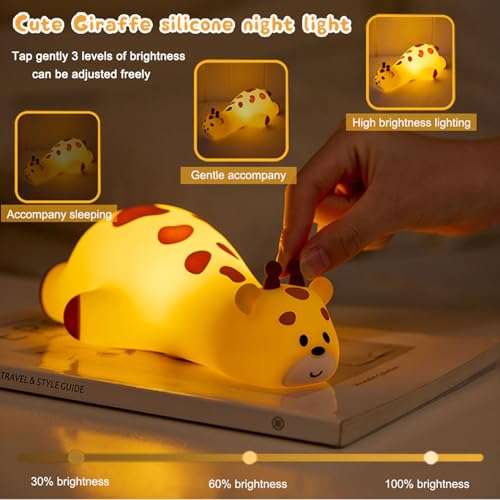 DREAMING MY DREAM Cute Giraffe Night Light for Kids,3 Levels Dimmable Bedside Touch Lamp Rechargeable Squishy Nursery lightwith 30min Timmer Function, Baby Kids Room Decor, Gifts for Girls boy