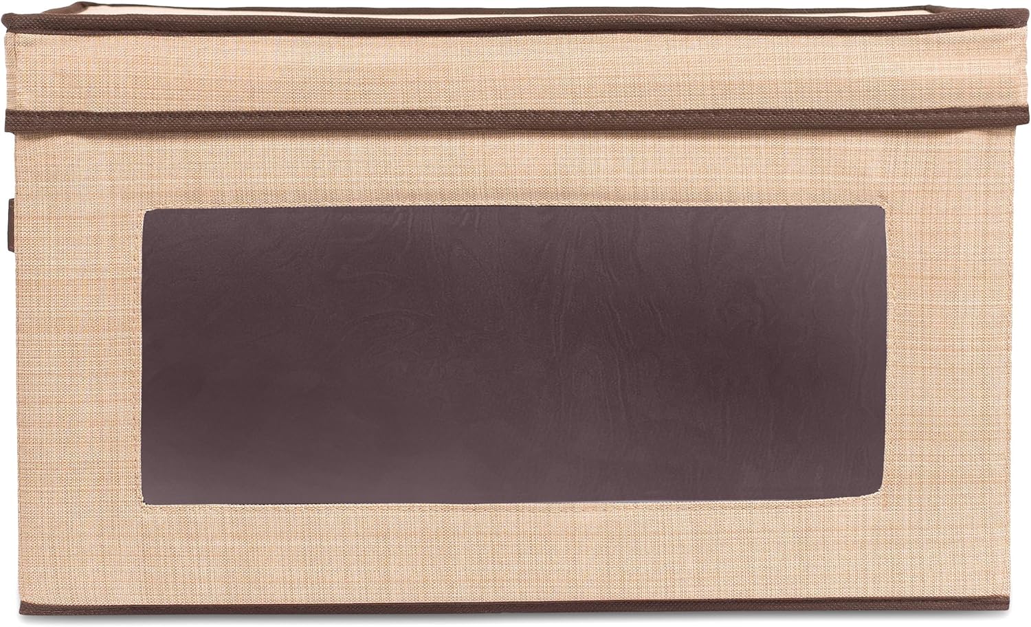 - STORAGE ESSENTIAL: Stow away blankets, toys, books, scarfs, sweaters, throws and other household items within the soft, uniquely designed canvas bins. Includes a clear window to view items that are stowed inside