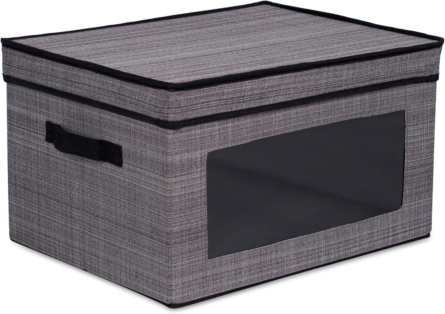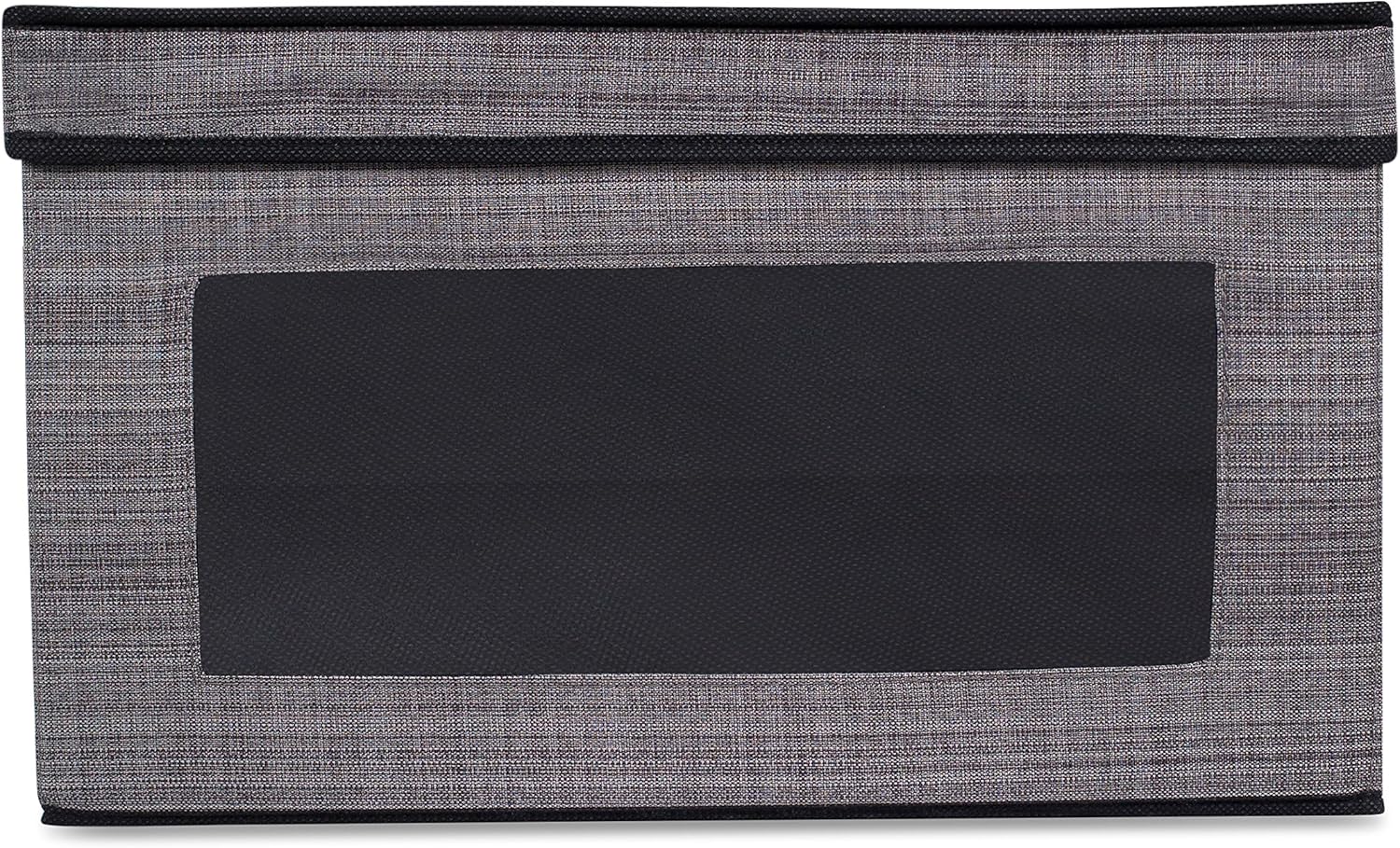 Stow away blankets, toys, books, scarfs, sweaters, throws and other household items within the soft, uniquely designed canvas bins. Constructed from 100% polyester canvas and reinforced with strong sturdy sides, the storage bins are equipped to remain strong throughout the life of the product. Storage bin includes a see through window allowing you to view your stowed away items. Simply transport around the house easily with the comfortable fabric handles. Stow away within the closet, bedroom or playroom and save space by stacking the boxes thanks to the durable lid. The boxes collapse when not in use and may be unfolded easily when needed. Declutter your house with the brilliant look of our storage bins.