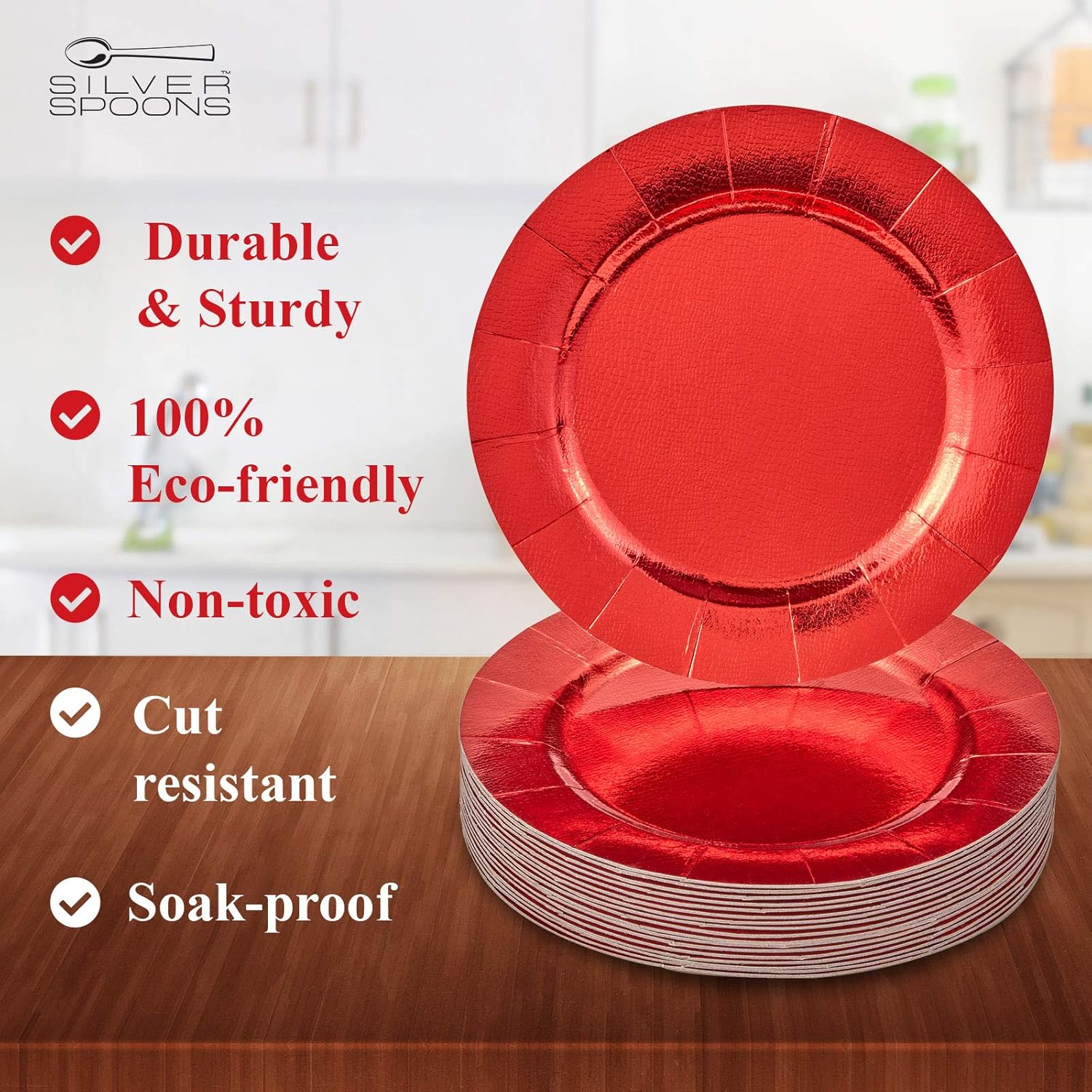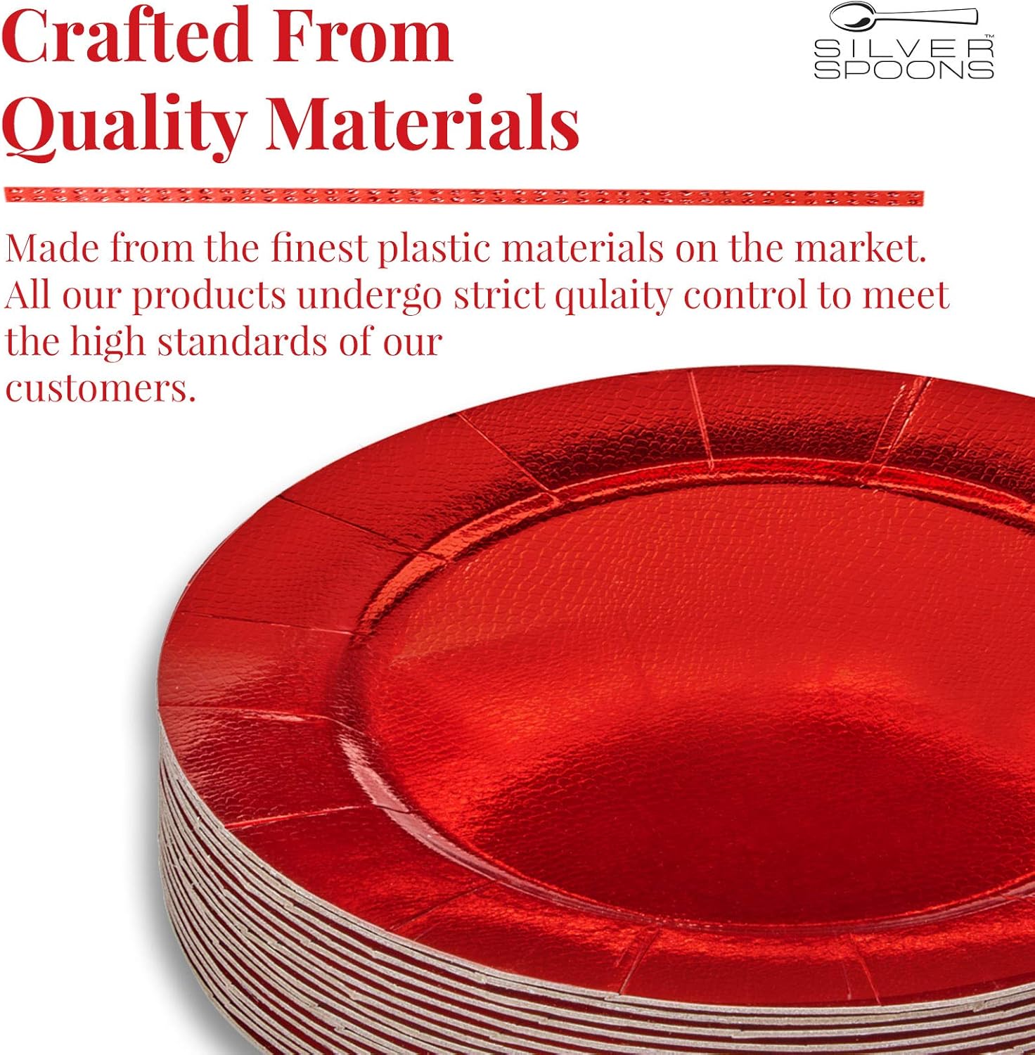 - CONVENIENT TO USE: These disposable charger plates are sturdy enough to carry the weight of heavy food items. The plates are made of heavyweight and food grade paper materials crafted to hold loads of food without sagging or breaking