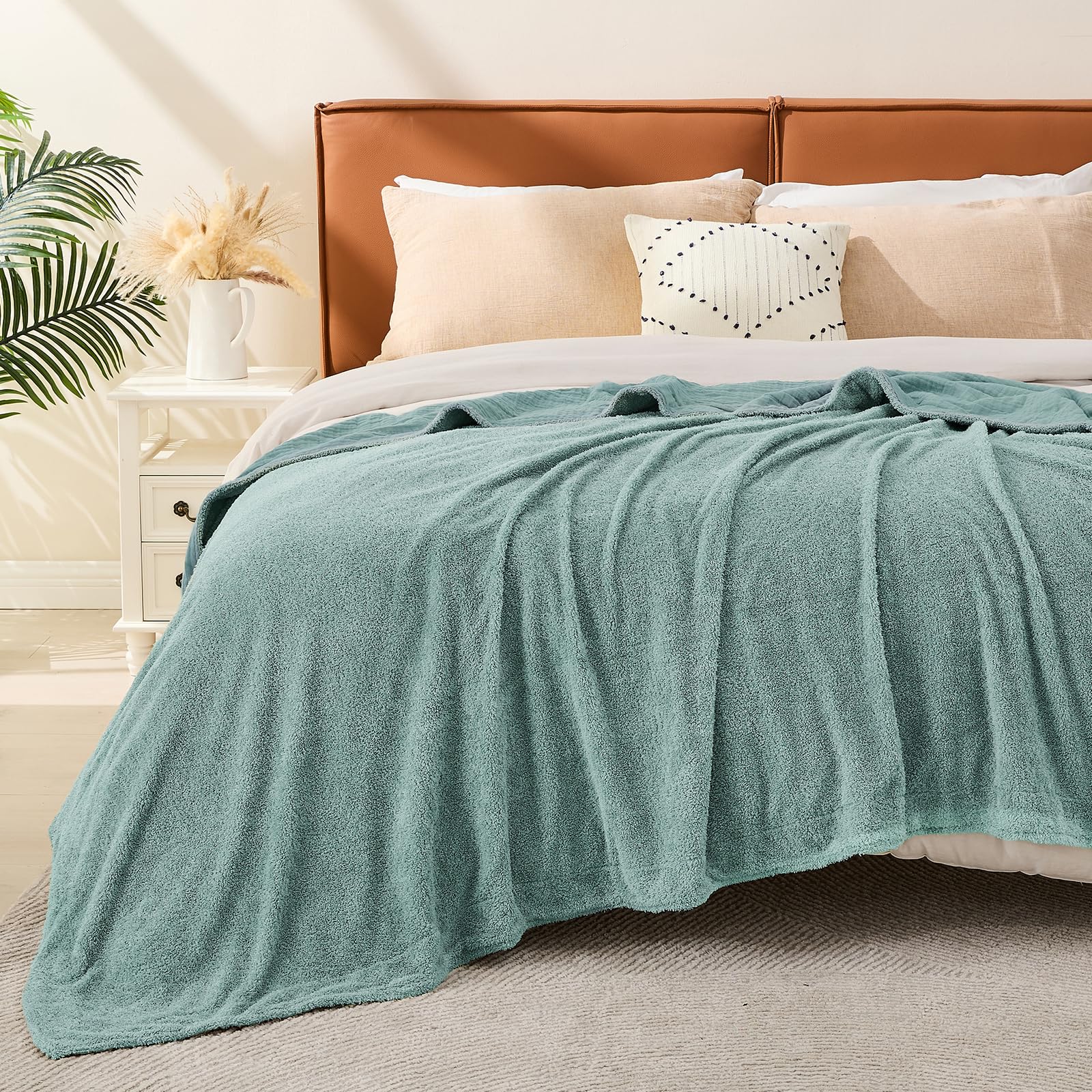 EMME Muslin Cotton Fleece Queen Blanket Reversible - 80"*90" Teal Soft Warm Throw Blankets for Couch Bed Picnic Travel Bed