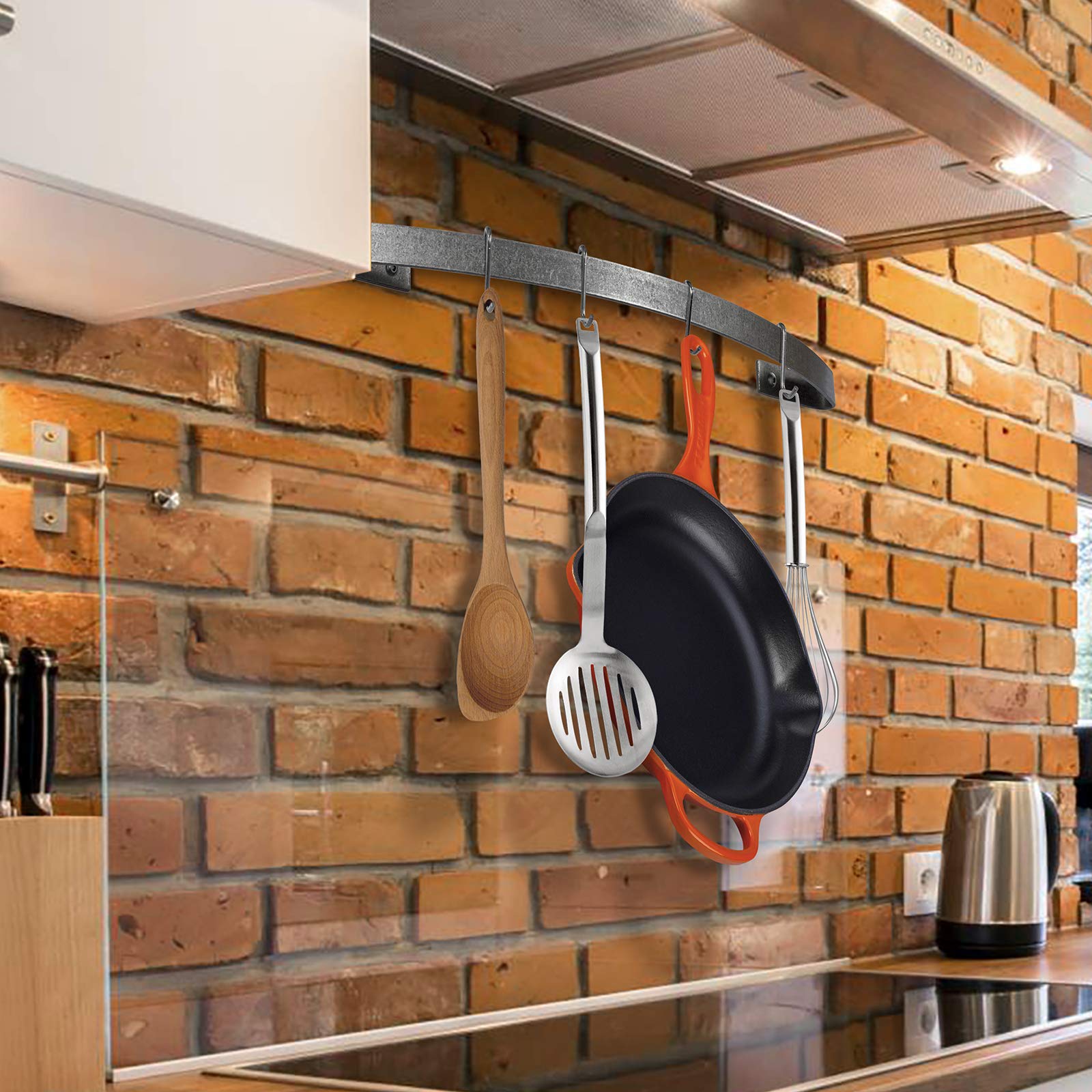 Enclume Handcrafted 24" Curved Wall Rack Utensil Bar w 6 Hooks, Hammered Steel