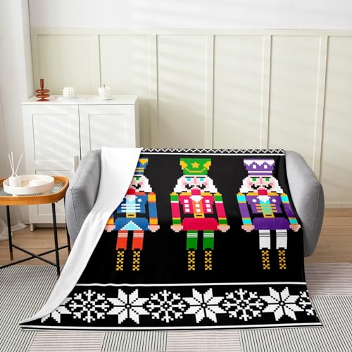 Erosebridal Nutcracker Blanket Throw 50x60 Inch, Retro Xmas Throw Blanket, Colorful Scandinavian Christmas Snowflakes Fleece Blanket, Black White Winter Flannel Blanket for Kids Teens