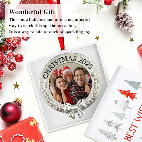 - ?¡¼Durable & Versatile¡½: Made from sturdy metal, this personalized Christmas hanging ornament 2025 ensures lasting shine. Perfect for adorning Christmas trees, mantels, windowsills, or holiday wreaths, it doubles as charming Christmas decorations 2025 for year-round memory display. The picture frame ornaments comes in a beautiful gift box with red ribbon which can be a ready gift for your loved ones.