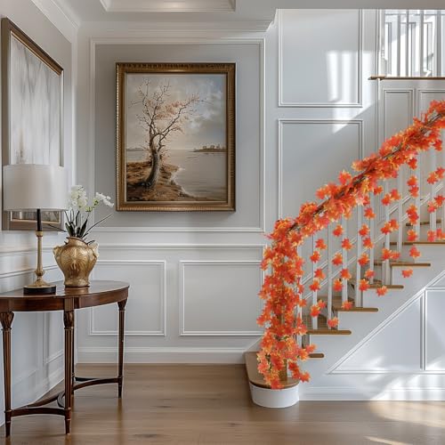 Fall Leaf Garland for Room Decor(12 Pack),Artificial Maple Leaves,Autumn Hanging Vines Red Ivy Plant for Bedroom Wall Decor Thanksgiving Halloween Christmas WeddingParty Garden Fireplace