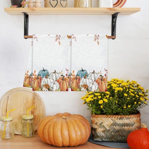 Fall Pumpkin Hand Towels Set of 2, Autumn Maple Leaves Boho Floral Thanksgiving Harvest Soft Absorbent Small Bath Towel Kitchen Dish Guest Towel for Bathroom Hotel Gym Spa