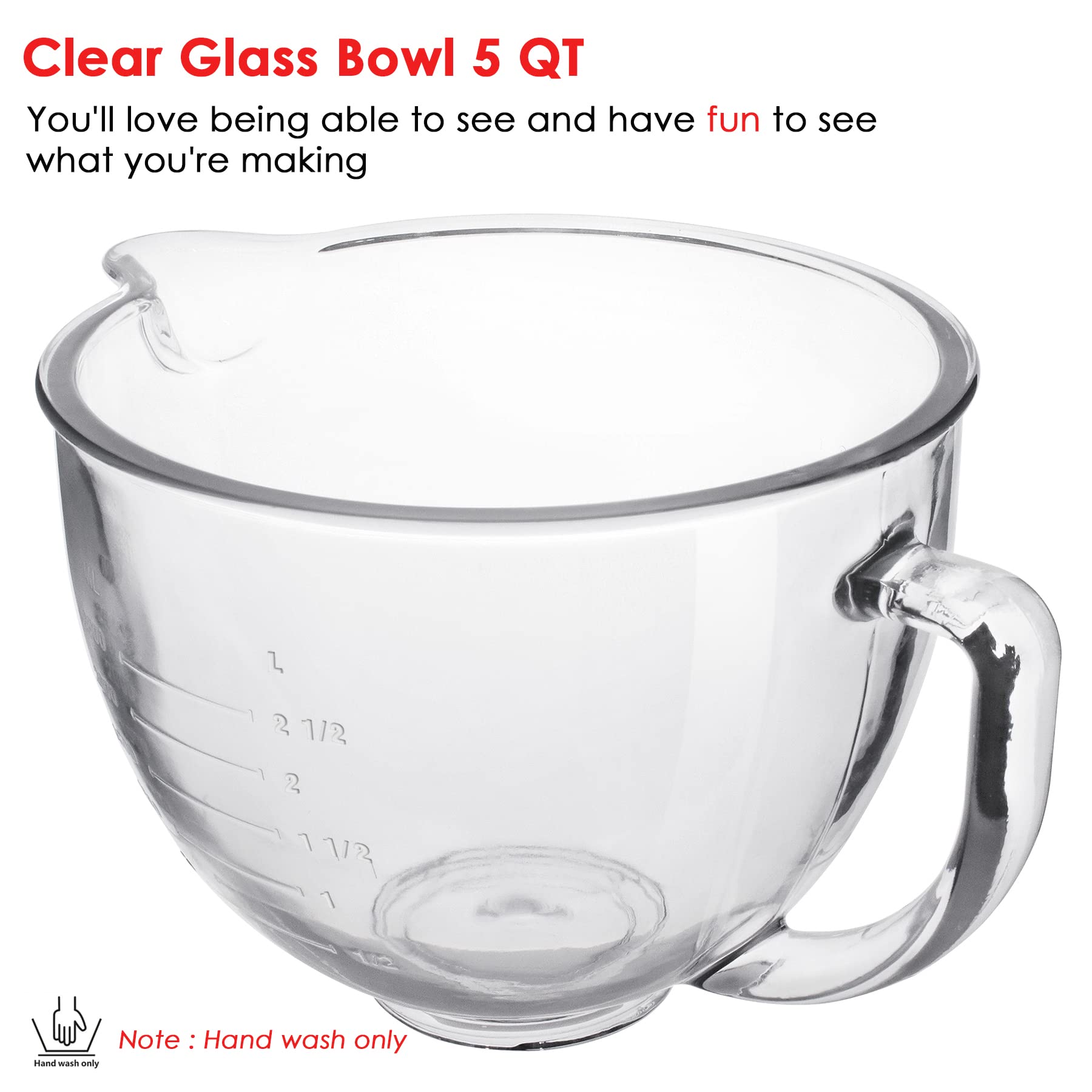 FIRJOY Glass Mixing Bowl 5 QT for KitchenAid 4.5 and 5 Quart Tilt-Head Stand Mixers