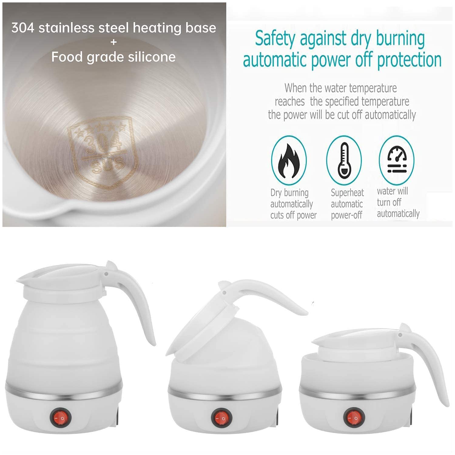 Foldable Electric Kettle, Upgraded Food Grade Silicone,400W 600ML Flash Heat Small Portable Travel Electric Kettle,110V US Plug (White)