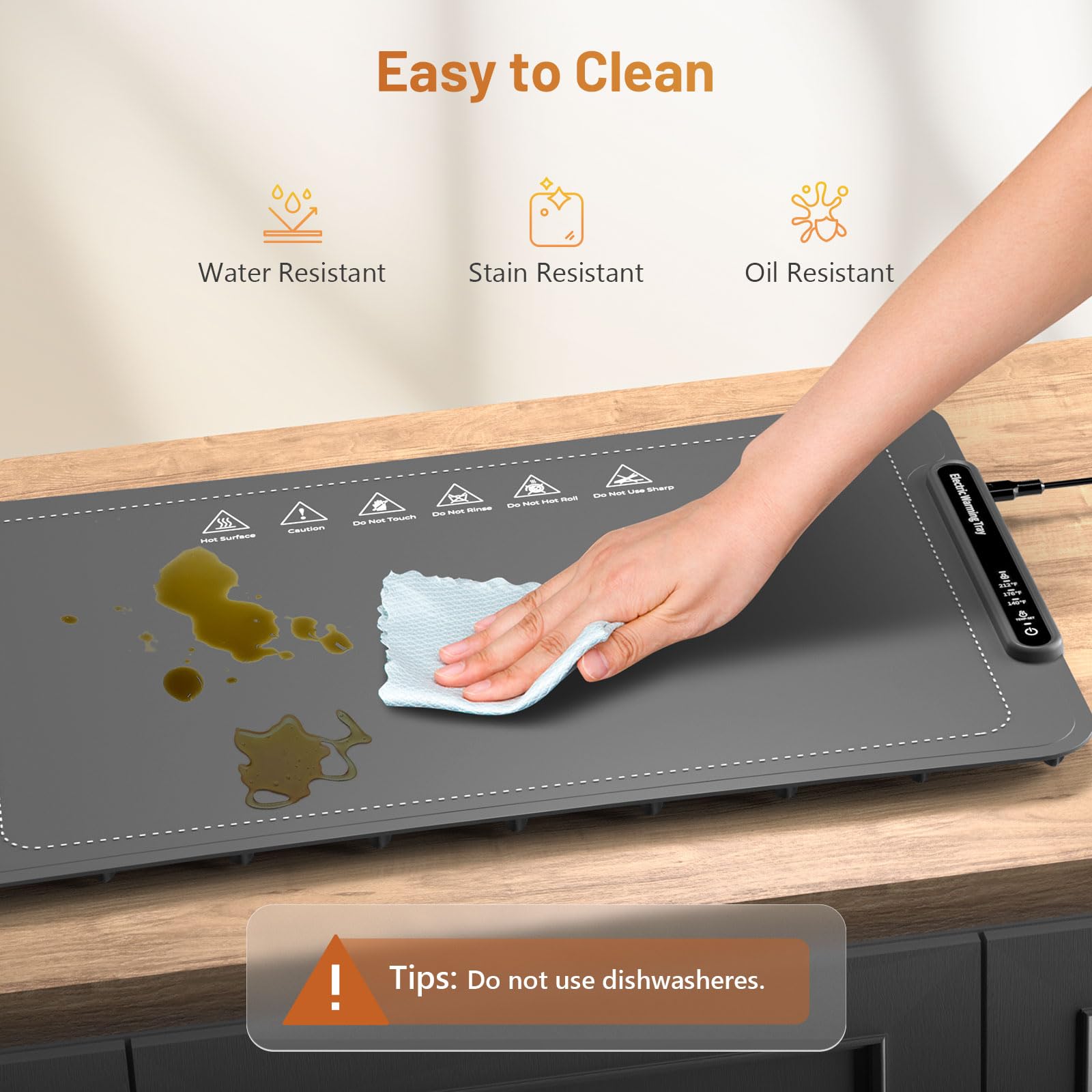 - Child Lock & Safe Protection: Relexnow electric warming tray equipped with a thoughtful safety lock, prevent children from accidentally touching and ensures that the unit operates safely around children.This warming mat features an automatic shutdown function after 3 hours of inactivity, providing peace of mind and energy-saving convenience.