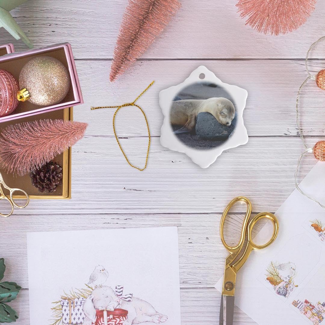 Galapagos Sea Lion Snowflake Ornament - 3DRose Ecuador Santiago Island Decor