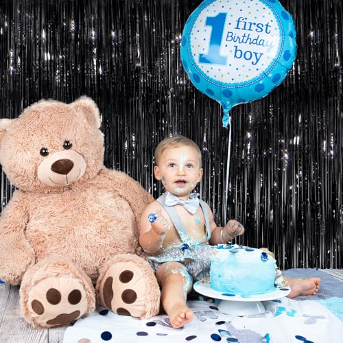 - Foil Fringe Backdrop: Includes 2 packs shiny Black foil fringe curtains, enough quantity for your party decoration. Each pack curtains size is 3.3 ft x 6.58 ft, enough length for decorate your party. Perfect accessories for decorating doors and walls. for creating a stunning backdrop for any occasion. shimmer tinsel backdrop curtain, you can make a beautiful entrance door curtain or a photo booth backdrop for your guests. They are perfect for christmas party.