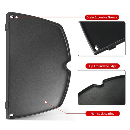 - 【Compact & Easy to Use】: GGC 6558 cooking griddle make your Weber grill new look. Lip around the outer edge prevents your food from falling off. You don't have to worry about how to avoid excess oil anymore, as it will flow out from the corner hole. Easy to install, use and clean