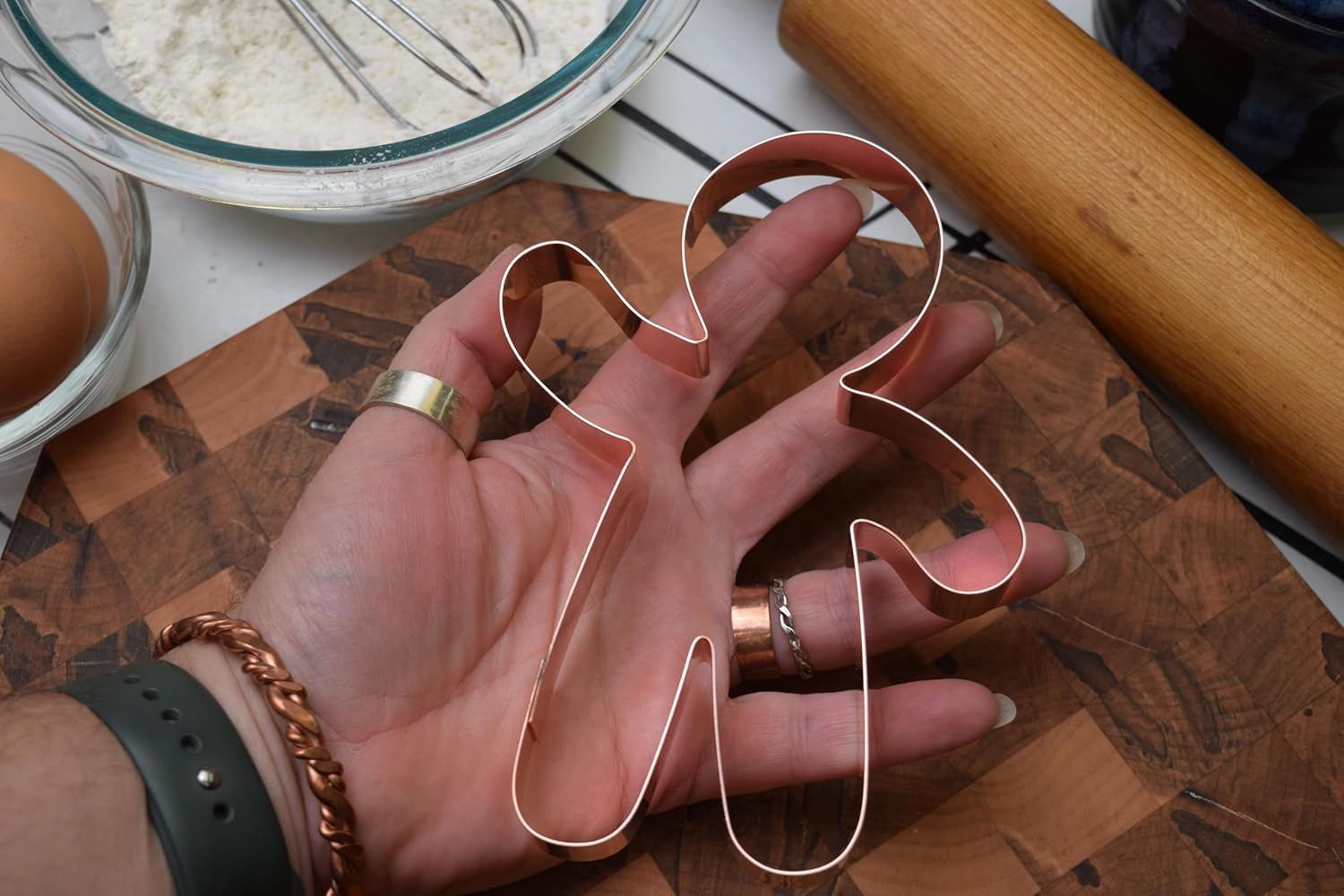 - Gingerbread Boy Shape: 4.25” x 6” handcrafted copper cutter forms detailed gingerbread boy cookies for Christmas gatherings