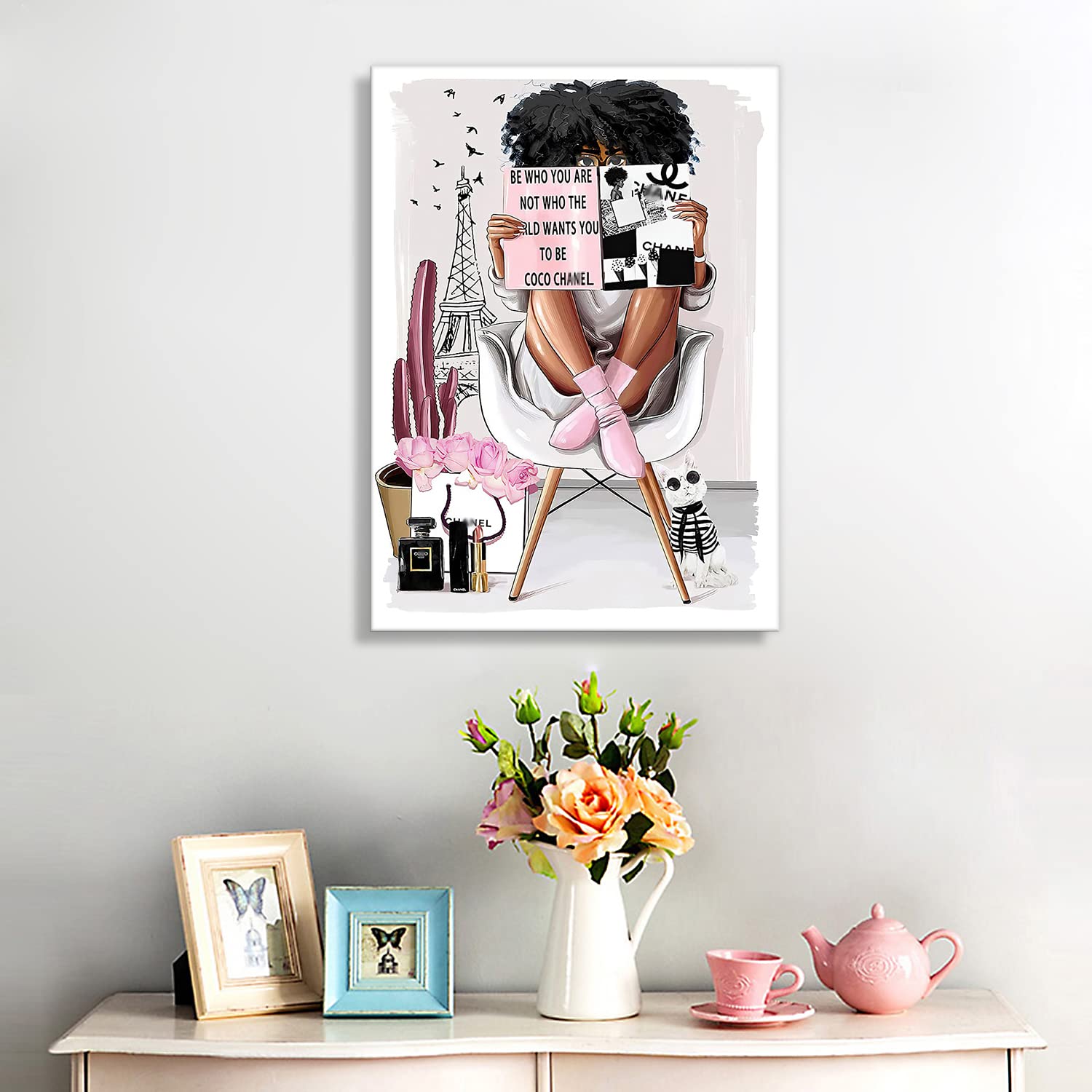 Girls Room Wall Art Girl Reading Fashion Picture Print on Canvas Bathroom Wall Decor Modern Female Room Artwork Wall Decorations for Teen Girls Woman Bedroom Ready to Hang(BE WHO YOU ARE)