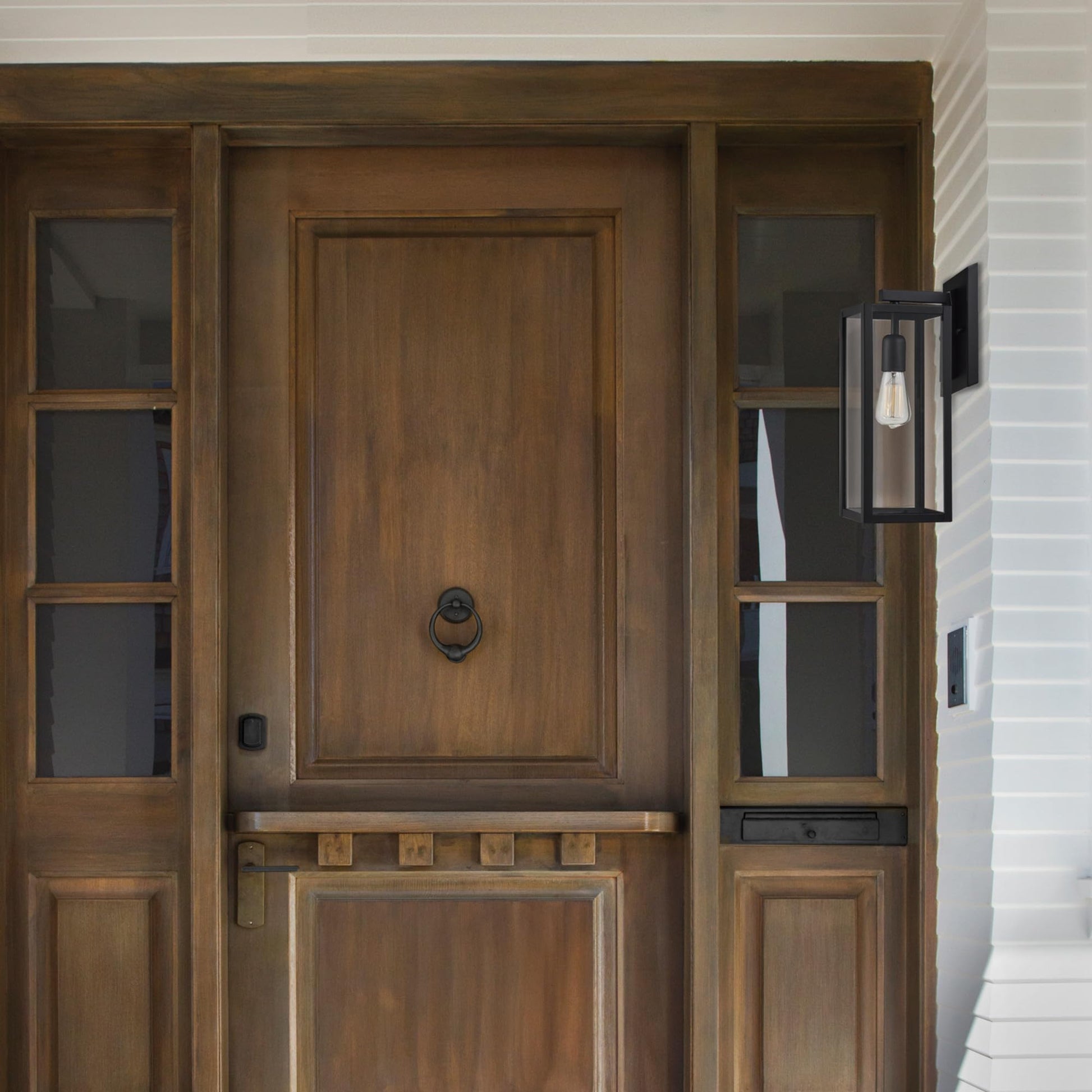 - MODERN OUTDOOR LIGHT FIXTURE: with its classic black finish, clear glass panes and weather resistant technology, the Bowery 1-Light Porch Light complements any modern house decor that you currently have making it the ideal piece for all your outdoor lighting needs