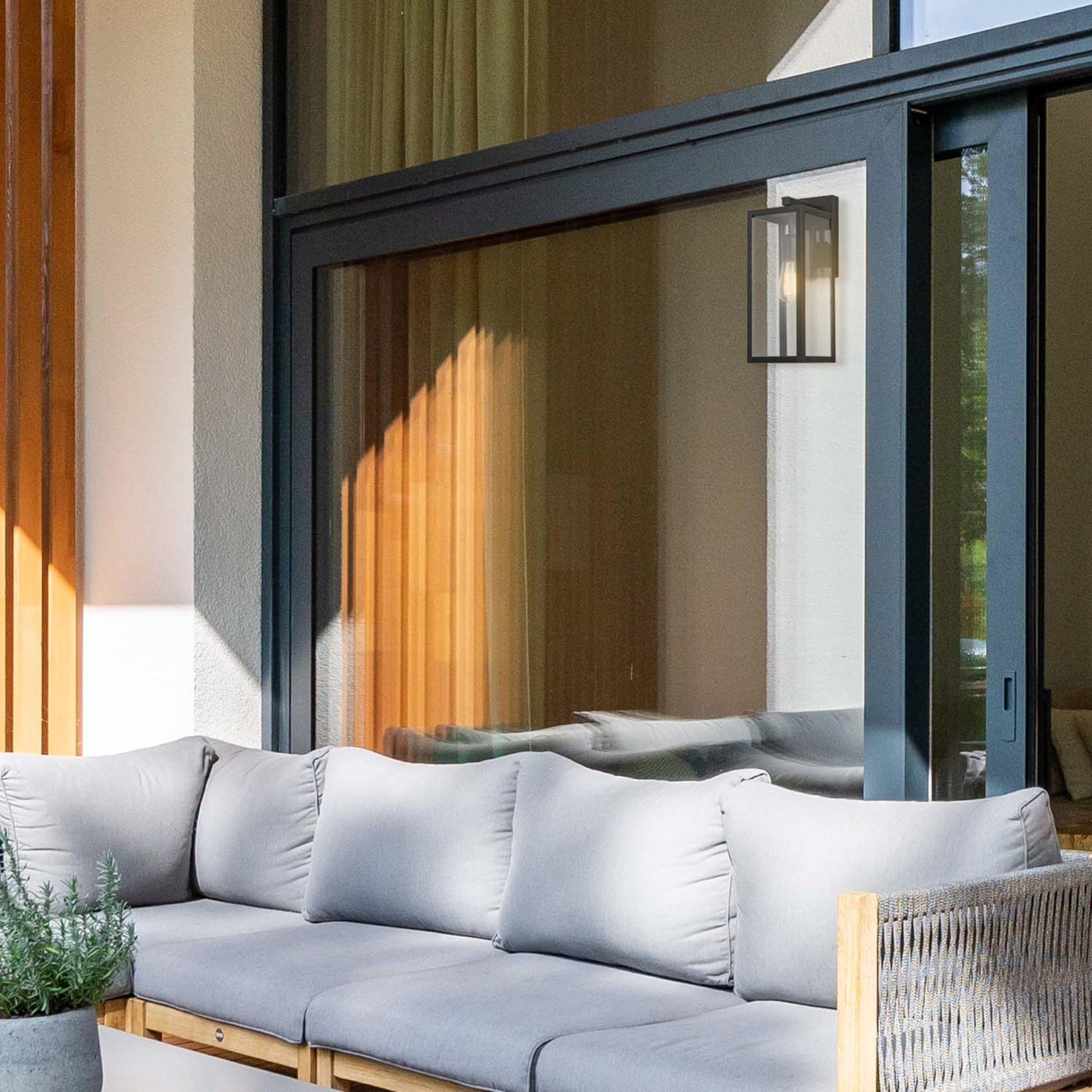 Details: Elevate your home's exterior with the sleek, minimalist design of the Globe Electric 1-Light Outdoor/Indoor Wall Sconce. Featuring a timeless matte black finish and clear glass panes, this modern wall fixture highlights your bulb of choice for a customizable style statement. Perfect for front porches, patios, garages, or interior spaces like hallways, the the wall lantern is crafted with weather-resistant materials for durable, year-round performance. Whether paired as a symmetrical set around a doorway or used individually to enhance outdoor living areas, this versatile sconce blends contemporary design with effortless functionality. Easy to install with all included mounting hardware, it offers a seamless upgrade for any home exterior or transitional interior.