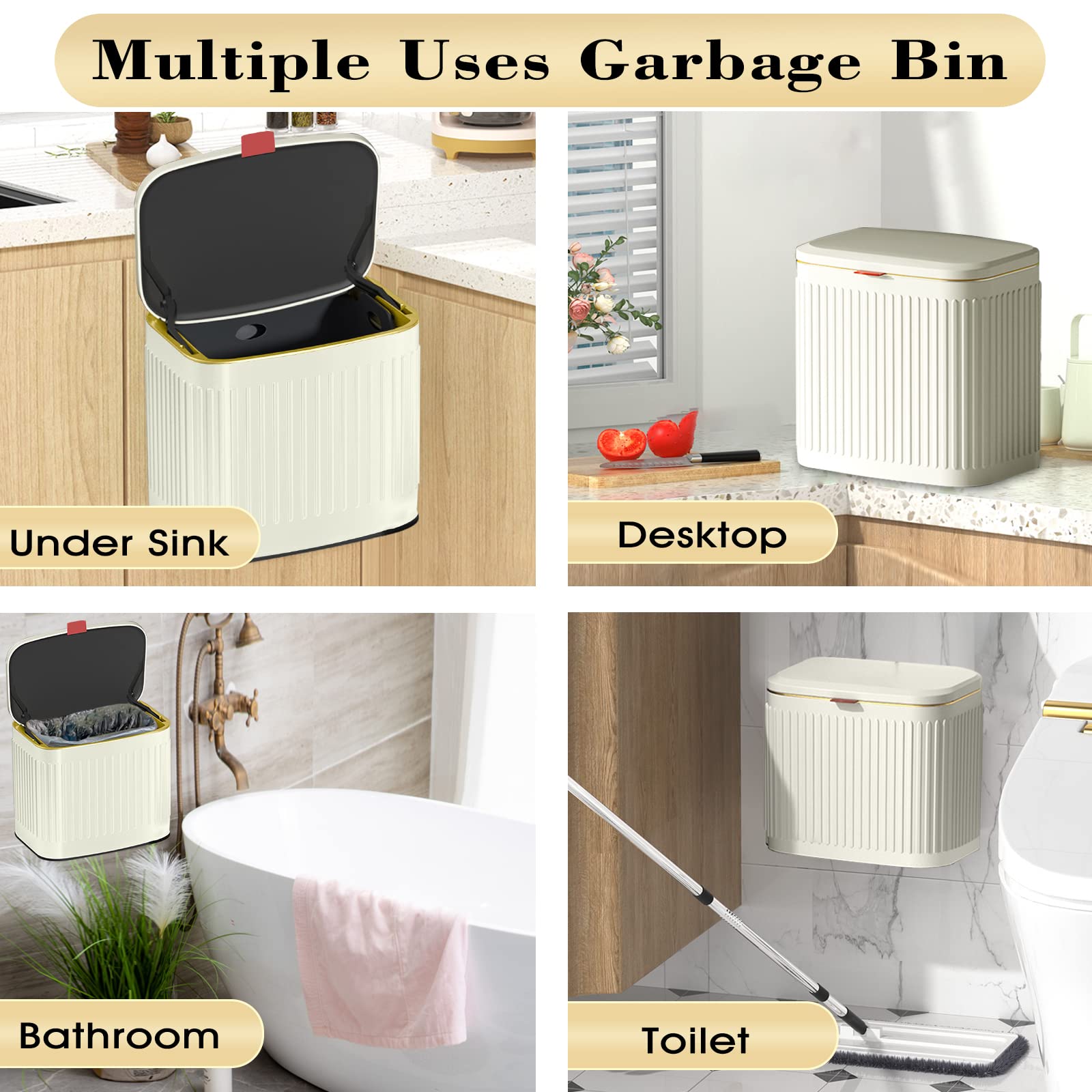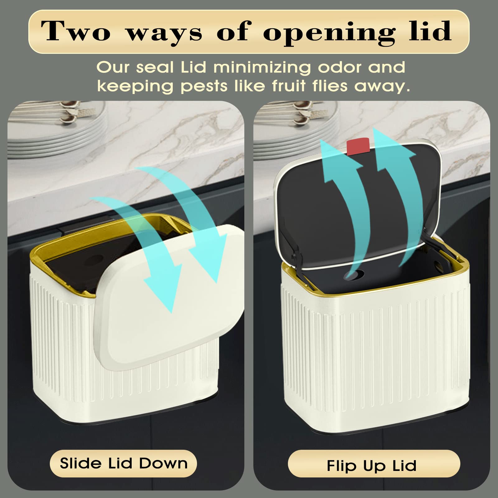 GloDeals Kitchen Trash Can with Lid, 2 in 1 Small Garbage Can Compost Bin Countertop, Wall-Mounted Under Sink Indoor Trash Bin for Kitchen, Bathroom, Cabinet Trash Can Hanging (4L, White/1.05 Gal)