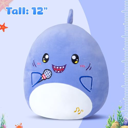 Glow Guards 12'' Shark Plush Pillow Cute Blue Shark Stuffed Animal Holding Microphone Soft Plush Toy Stuffed Animals Birthday Gift for Boys Girls Kids