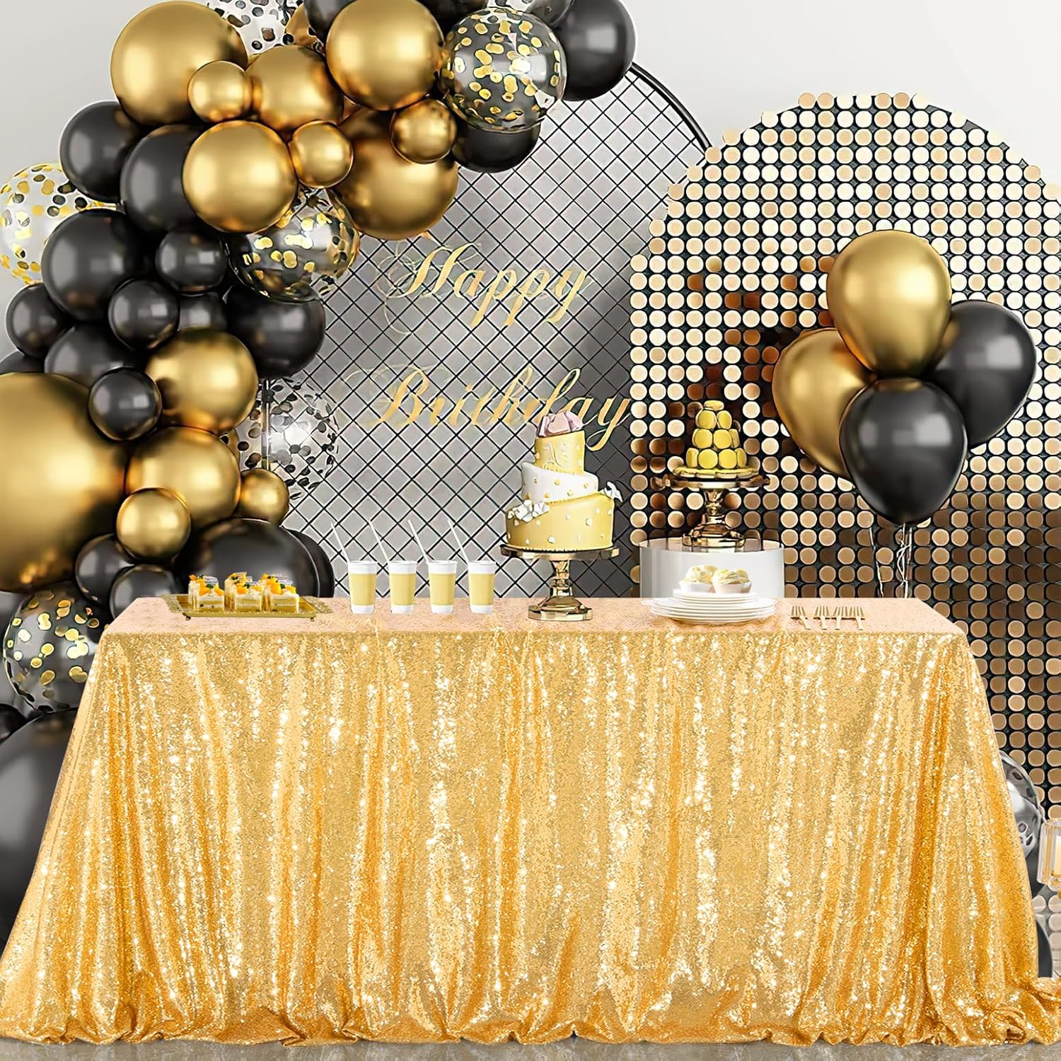 | Rose Gold Tablecloth | Gold Sequin Backdrop | Black Backdrop Curtain | Shimmer Wall Backdrop