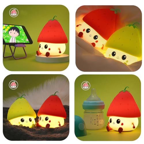 Green Strawberry Night Light, Cute Fruit Night Lamp for Kids Bedroom USB Rechargeable Lamps 2 Brightness Levels, Nursery Bedside Delay-Off Nightlight for Baby Boys Girls Birthday Christmas