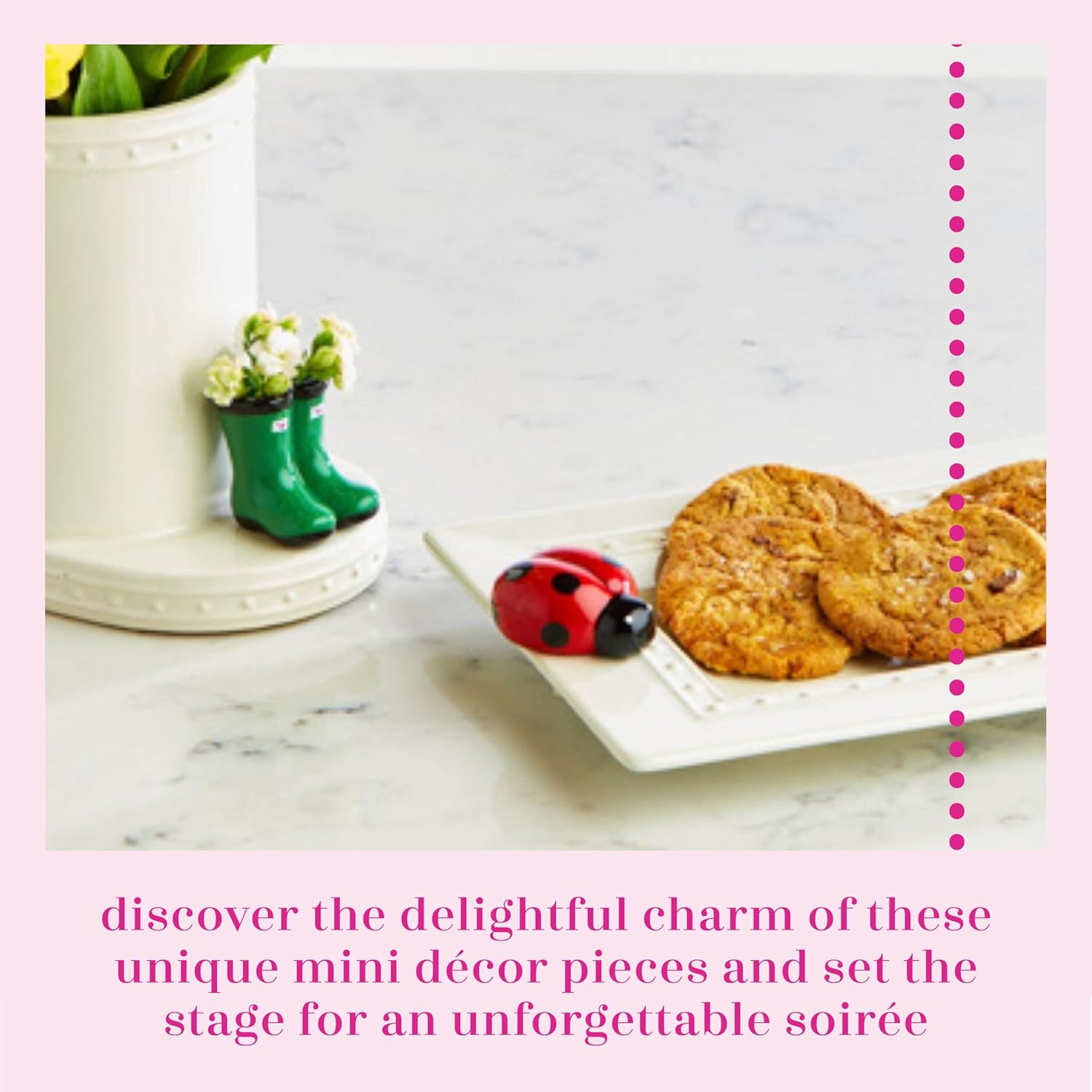 elevate the theme and ambiance of your interior décor and boost your special event or occasion with our unique decorative minis. combine them with items from our classic serving platters and home décor collection. each platter and décor piece comes with a rim hole, providing easy placement for the mini.