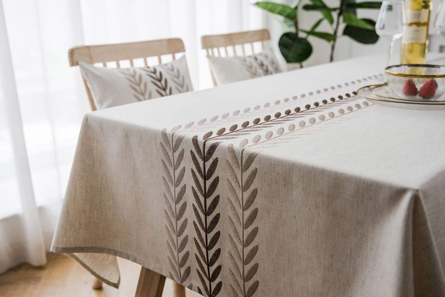 Bringsine Embroidery Wheat Ear Tablecloth Heavy Weight Cotton Linen Fabric Dust-Proof Water-Proof Table Cover