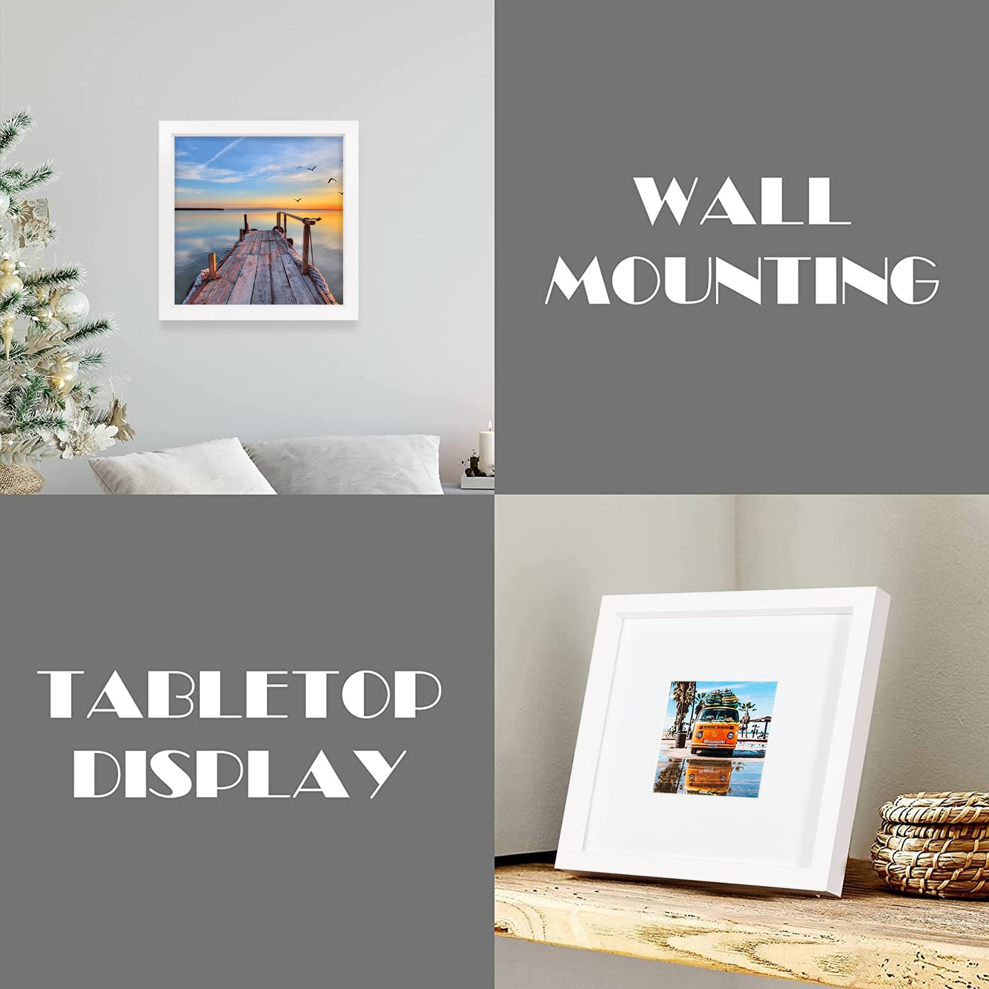 - 12x12 Wooden Picture Frame - These 12 by 12 picture frame are designed to fit a 8x8 photo with mat, if you remove the mat, it can fit a 12x12 photo. (Note: Mat opening was designed slightly smaller than photo itself in order to hold it steadily while not a defect).