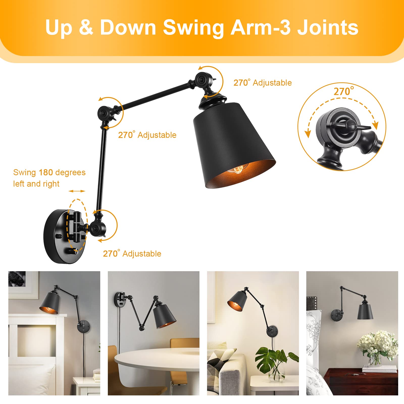 - 【Bulb Requirements & Applicable Occasions】 The Plug in Wall Light Bulb Base: E26 Medium, Bulb Type: Stepless Dimmable LED, Halogen, CFL or Incandescence Bulb (bulb not included), Max Wattage: 60W. Voltage: 110-120V. The Swing Arm Wall Lamps are vintage industrial style and Perfect for Kitchens, Bedrooms, Dining rooms, Livingrooms, farmhouses, Bar, Corridor, Cafe, Warehouse, Club, Restaurant, Library, and So on.